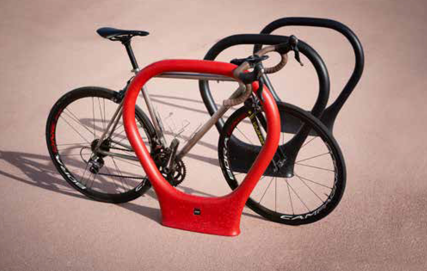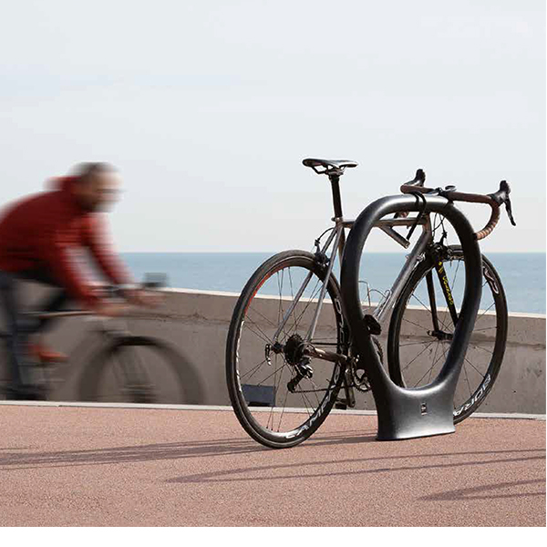 Dviračių stovas pagamintas iš UHPC (ultra-high performance concrete), „ypač stipraus betono“, gniuždymo stipris min 90 – 150 MPa, padengtas perdirbtu polietilenu – 7 mm.