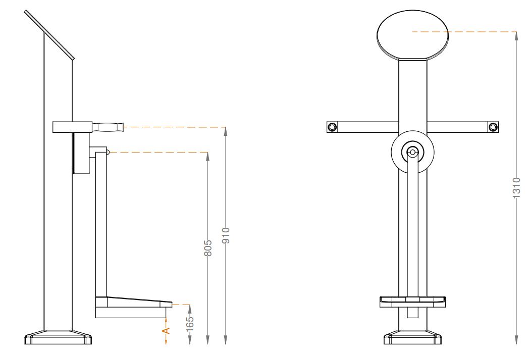 Lauko treniruoklis vaikams pagamintas iš 3, 8 ir 10 mm. cinkuoto plieno profilio 120×120 mm ir 45×45 mm., dažyto milteliniu būdu poliesterio dažais 70 μm pagal UNE EN ISO2808 standartą.