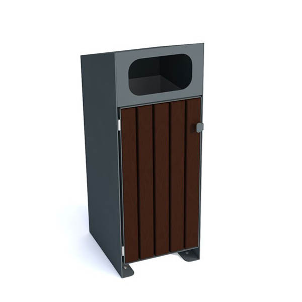 Šiukšliadėžė pagaminta iš plieno lakšto 1,5mm., cinkuoto, dažyto milteliniu būdu arba iš nerūdijančio plieno.