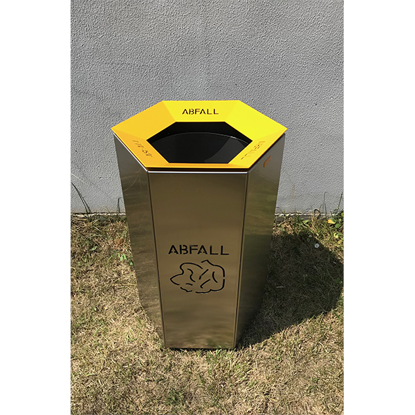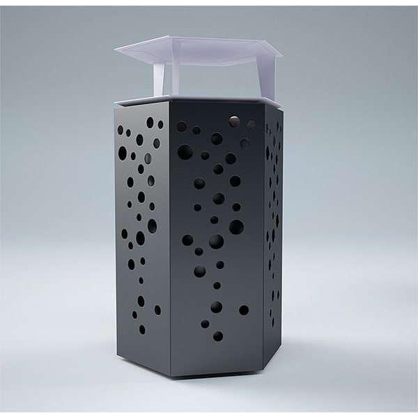 Šiukšliadėžė pagaminta iš plieno, cinkuoto, dažyto milteliniu būdu, galimas vaiantas su dekoratyviomis skylutėmis ir lygaus plieno.