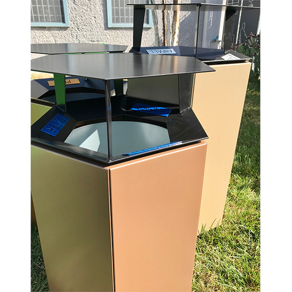 Šiukšliadėžės pagrindas dažomas: visiškai baltas RAL 9010, antracitas RAL 7016, baltas aliuminis RAL 9006