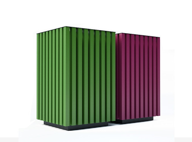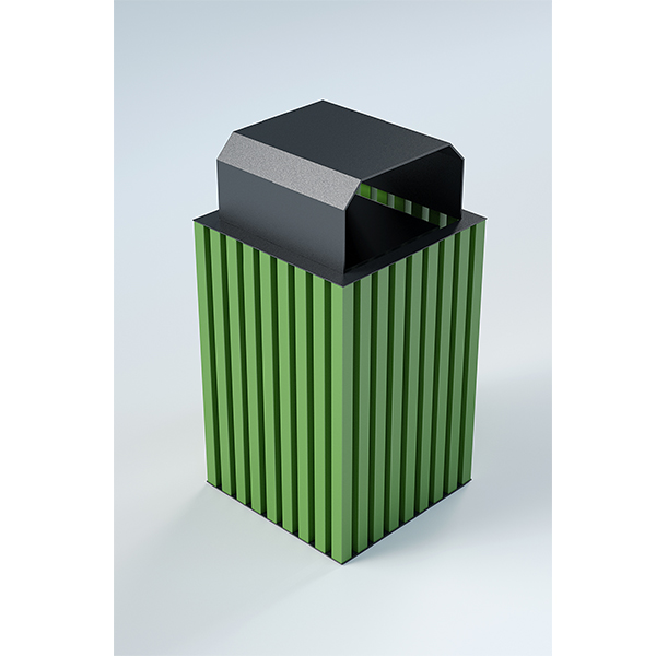 Šiukšliadėžė pagaminta iš plieno, cinkuoto, dažyto milteliniu būdu.