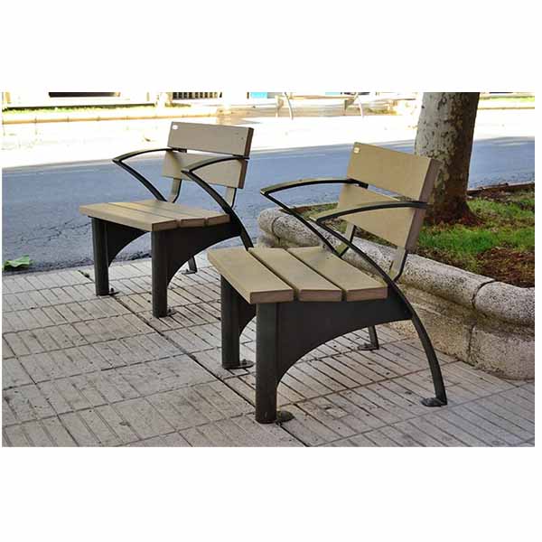 Sėdimoji lauko kėdės dalis pagaminta iš 100 % be priemaišų perdirbto HDPE lentų, sustiprintų cinkuotu plienu. Antigrafitinės, nereikalauja priežiūros ir 100% atsparios oro sąlygoms.