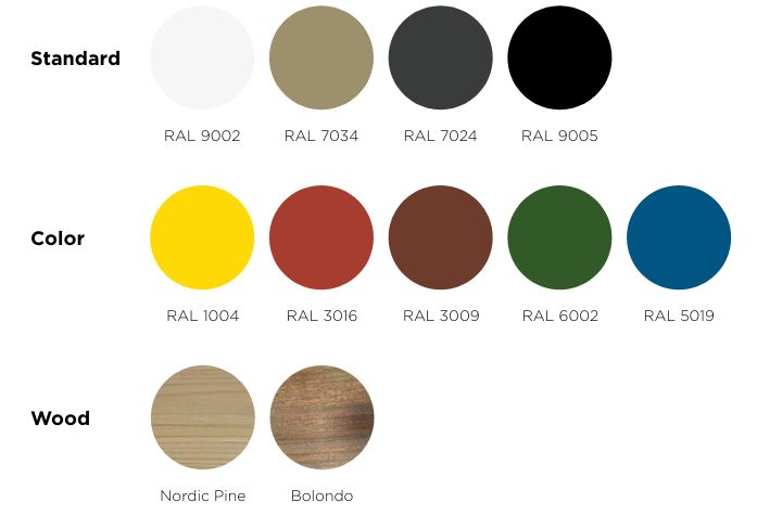Lauko suoliukas pagamintas iš cinkuoto plieno lakšto, dažyto pagal RAL.