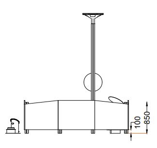 Laikantieji stulpai pagaminti iš aliuminio 95x95mm., dažyto milteliniu būdu pagal RAL, parapetas iš HDPE 15 mm.